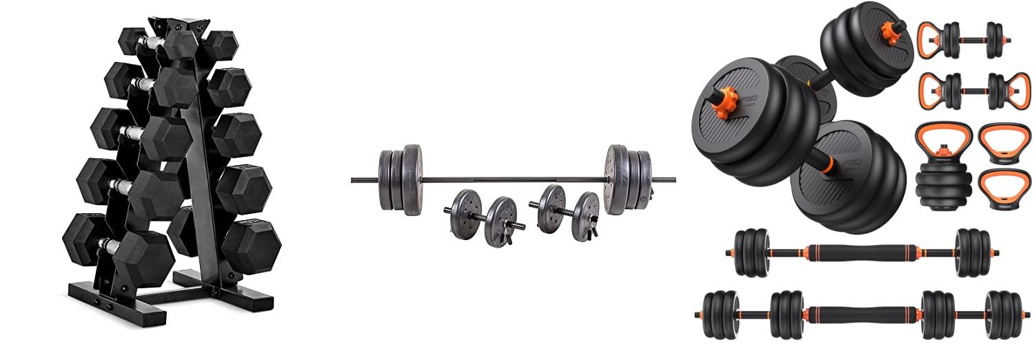 - This set comes with everything you need to start: 5, 10, 15, 20, and 25-pound dumbbells.