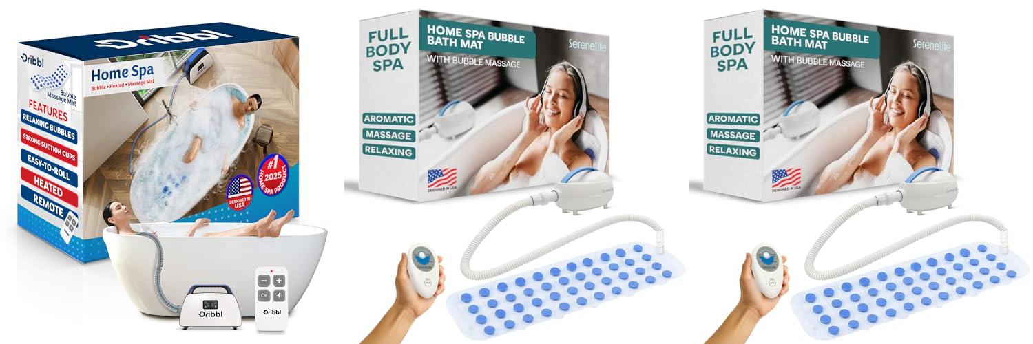 1. Dribbl Electric Bubble Massage Bathtub Mat – Non-Slip Full-Body Waterproof Hot Tub Spa Mat for Bath with Heater