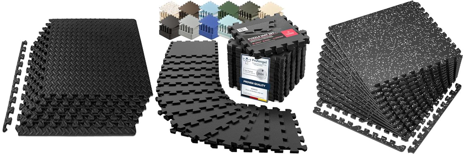2. bemaxx Gym Mats Set – 18 pcs EVA Interlocking Foam Floor Tiles (12.6″x12.6″x0.4″) 18sqft Protective Gym Flooring Sports Home Workout Exercise Mats Puzzle Garage Fitness Play-Room Garage Pool Treadmill