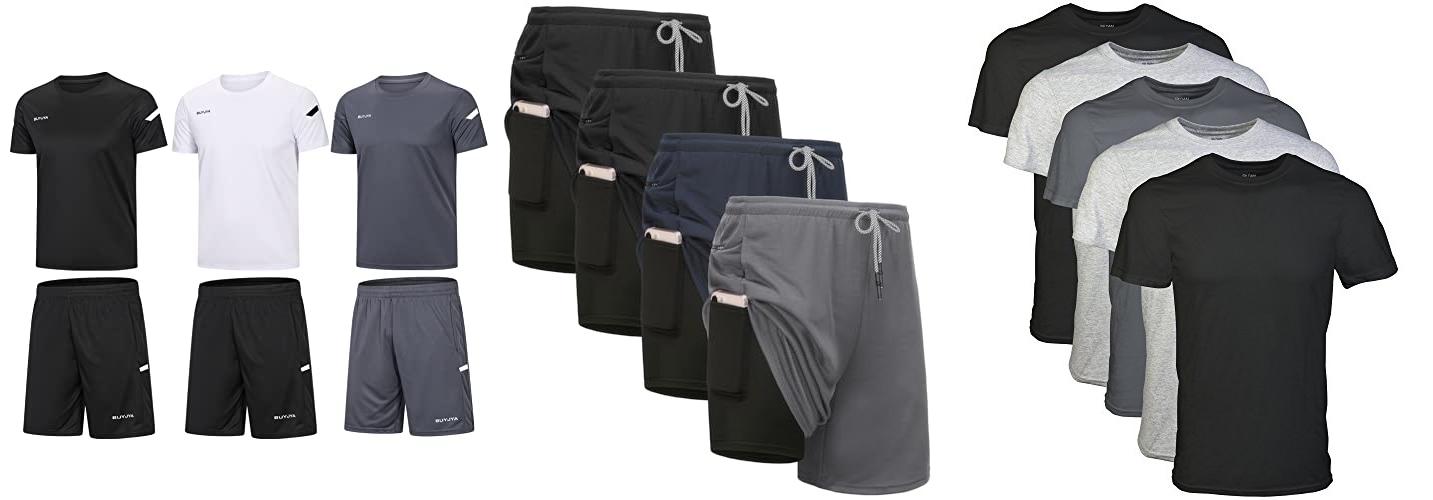 1. BUYJYA Men’s Workout Clothes Athletic Shorts Shirt Set 3 Pack Basketball Football Training Running Gym Christmas gifts