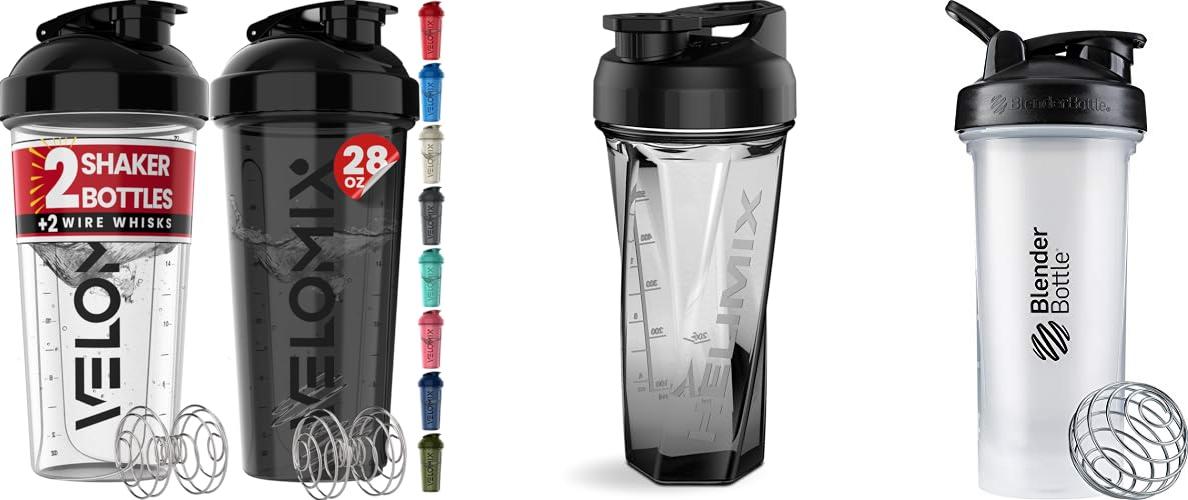 1. VELOMIX -2 Pack- 28 oz Protein Shaker Bottles for Protein Mixes – 2x Wire Whisk