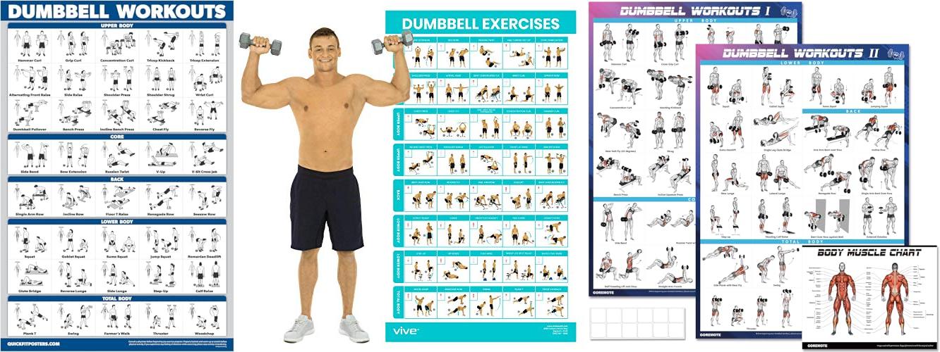 3. Dumbbell Workout Poster Set (2 Pack) – Workout Charts for Home Gym