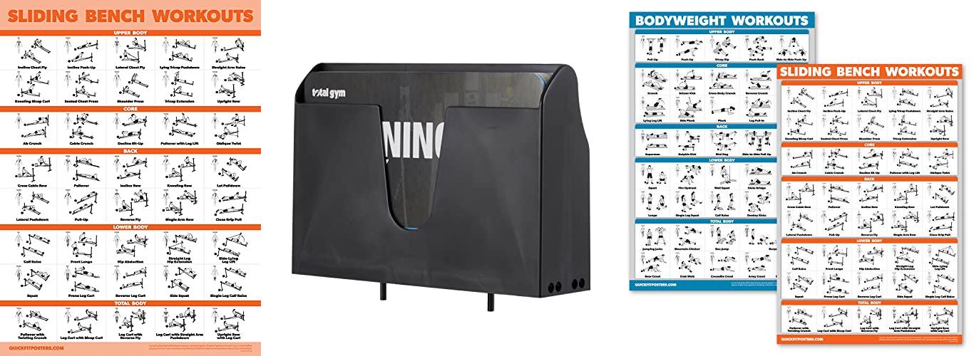 3. QuickFit 2 Pack – Sliding Bench Workouts & Bodyweight Exercise Poster Set – Compatible with Total Gym & Weider Ultimate Body Works (Laminated